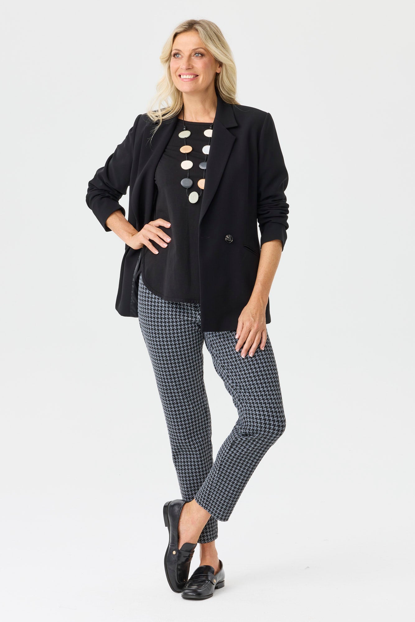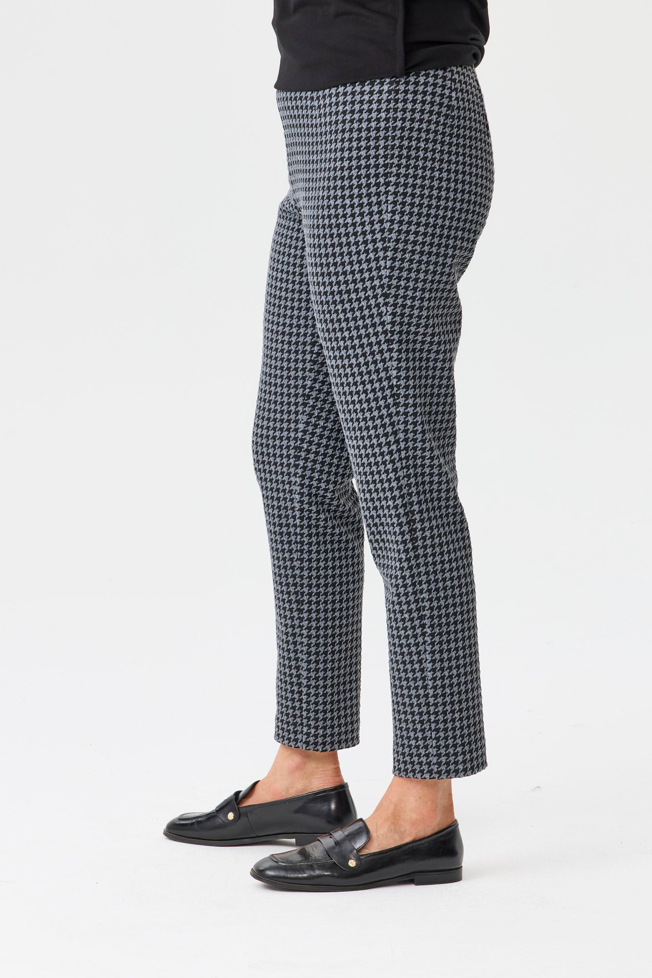 Step into polished comfort with the Derby Check Stretch 7/8 Pant in Charcoal. Showcasing a timeless check pattern, this tailored style blends classic sophistication with modern ease. The flattering 7/8 length creates a streamlined silhouette, while the stretch fabrication ensures all-day comfort. Perfect for work or weekend wear, these pants pair effortlessly with both crisp shirts and relaxed knits.