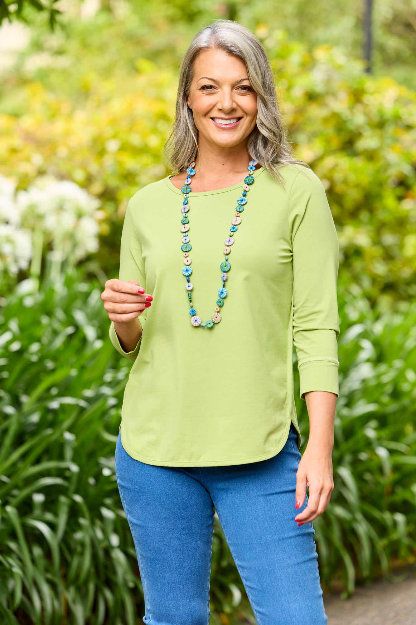 The Eternity Modal/cotton 3/4 Sleeve Top is a top that delivers easy movement and comfort for daily routines. Modal and cotton fabric keeps the top comfortable against the skin and suited to long wear without feeling heavy. The round neckline offers clean coverage at the front and keeps the upper line simple for layering. 3/4 sleeves give coverage without feeling heavy, working well when you want a lighter sleeve length.