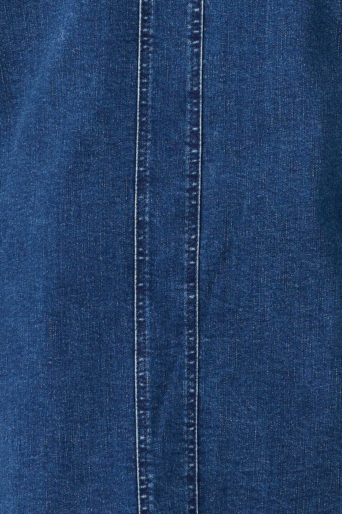 Refresh your outerwear collection with the Harper Denim Longline Jacket in Indigo. Designed for everyday versatility this classic denim layer blends structure with comfort thanks to its stretch fabrication. The longline silhouette offers flattering coverage while the collared neckline front yoke detailing and faux horn button closure bring timeless denim styling to this easy-to-wear wardrobe staple.
