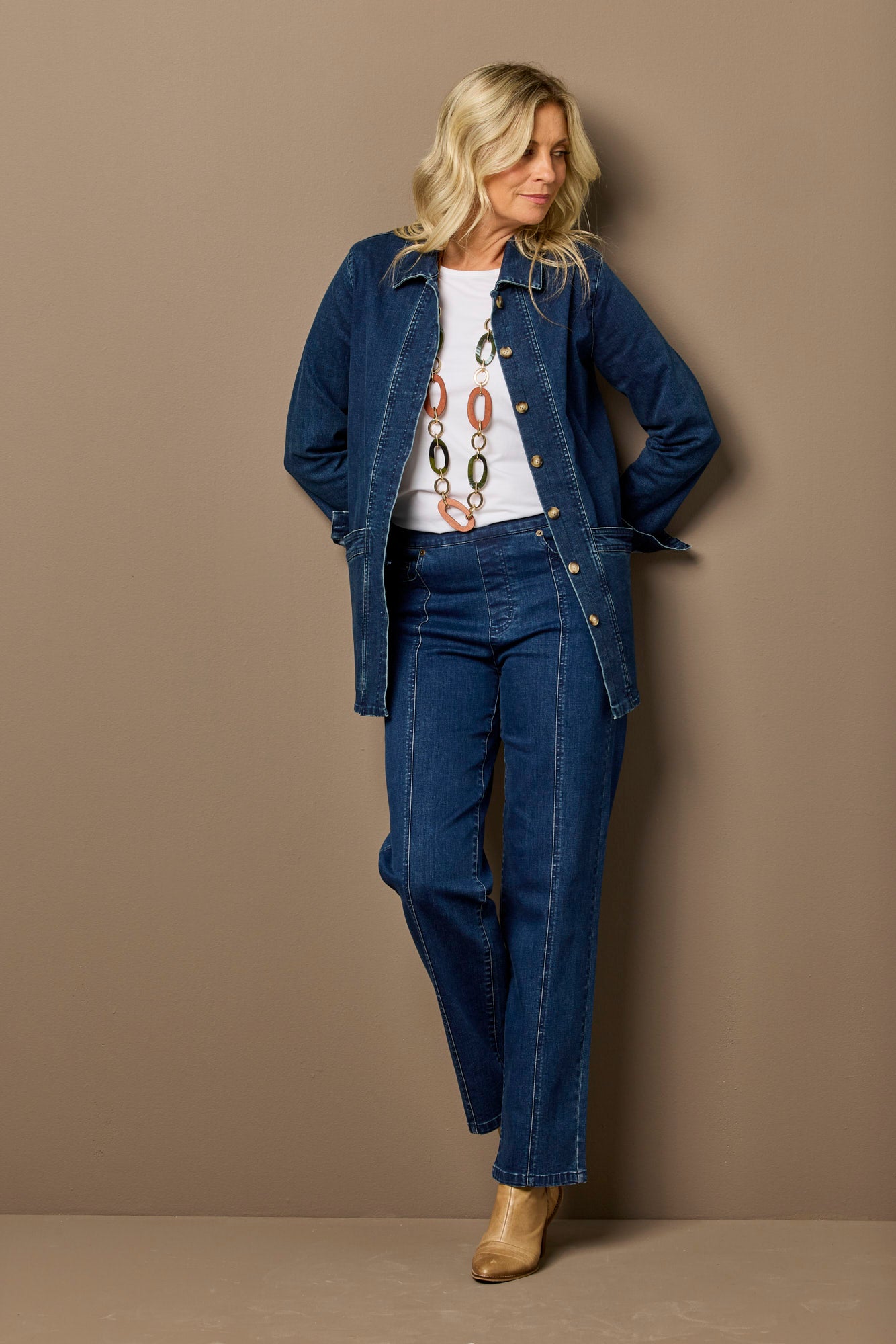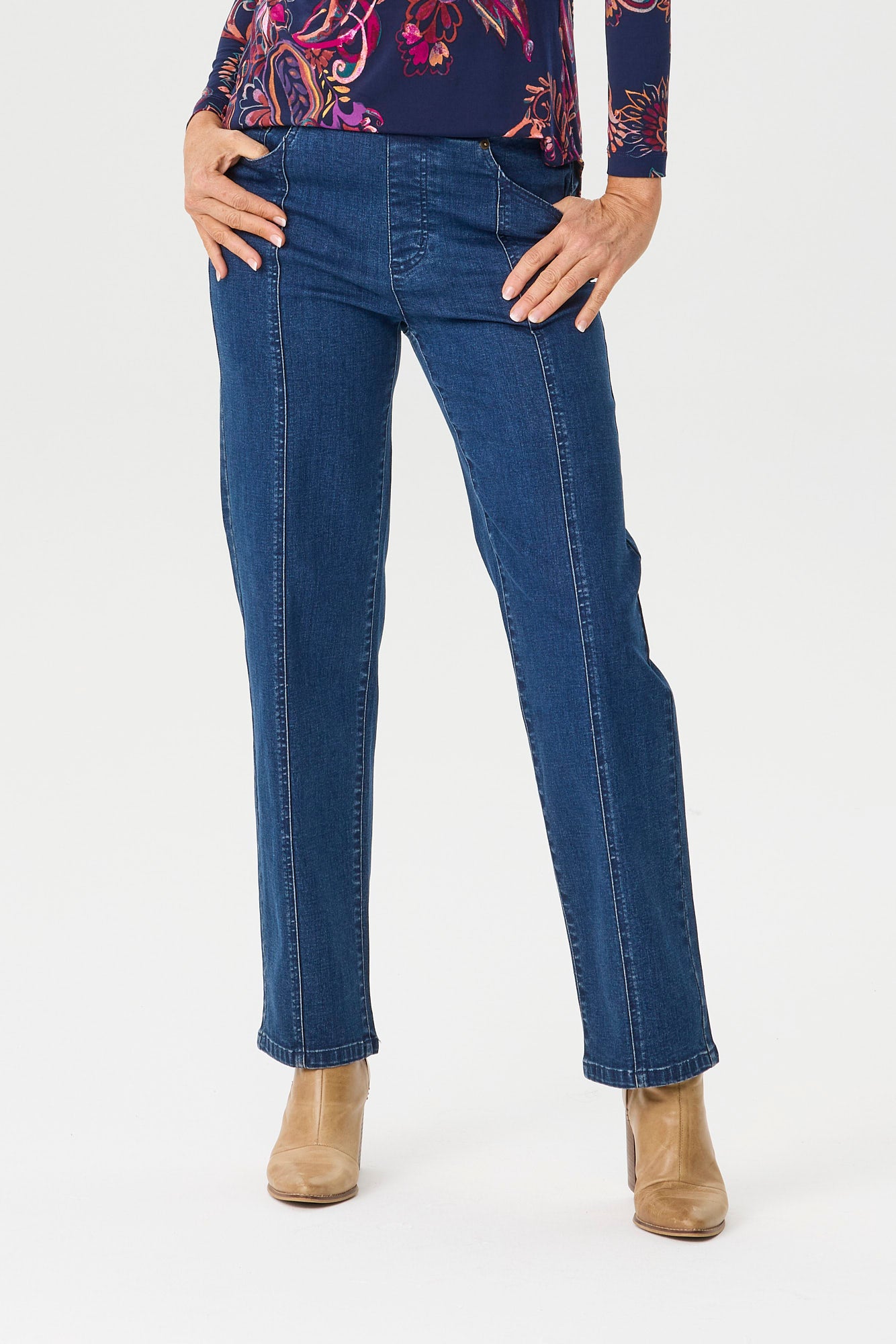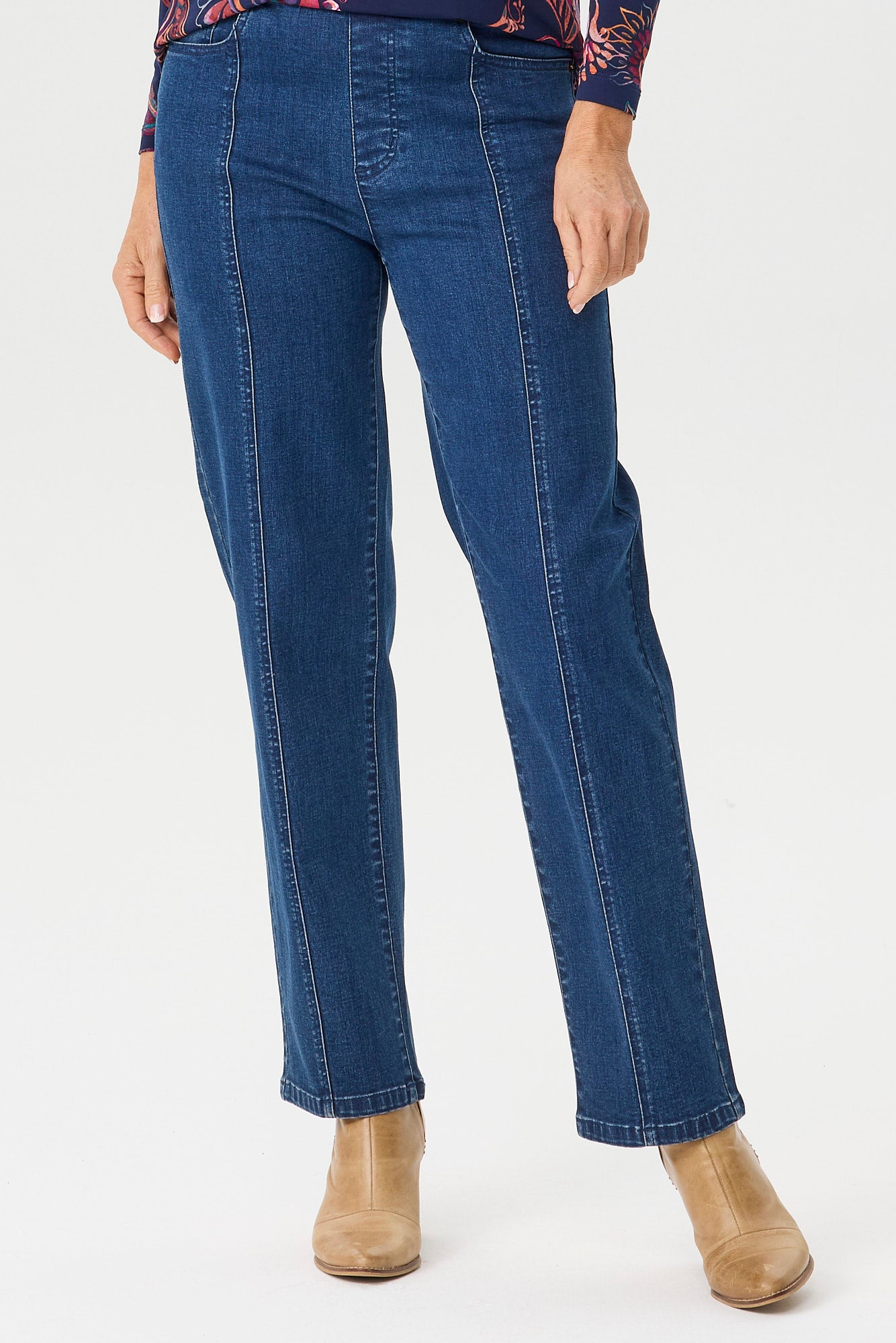 Refresh your everyday denim with the Harper Straight Leg Pull On Jean in Indigo. Designed for comfort and effortless style this easy pull-on jean features a flattering straight leg silhouette perfect for daily wear. Thoughtful seam detailing and classic pocket styling with rivet accents add a timeless denim touch while keeping the look relaxed and versatile.