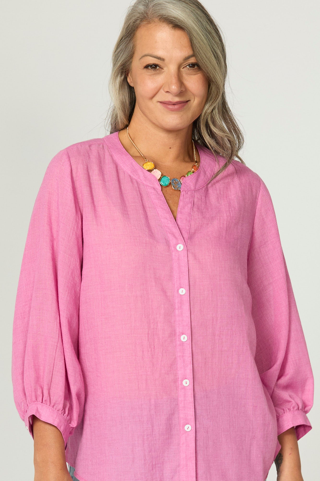 The Pink Lemonade hue brings a fresh pop of colour, ideal for pairing with denim, linen pants, or layered under knitwear.