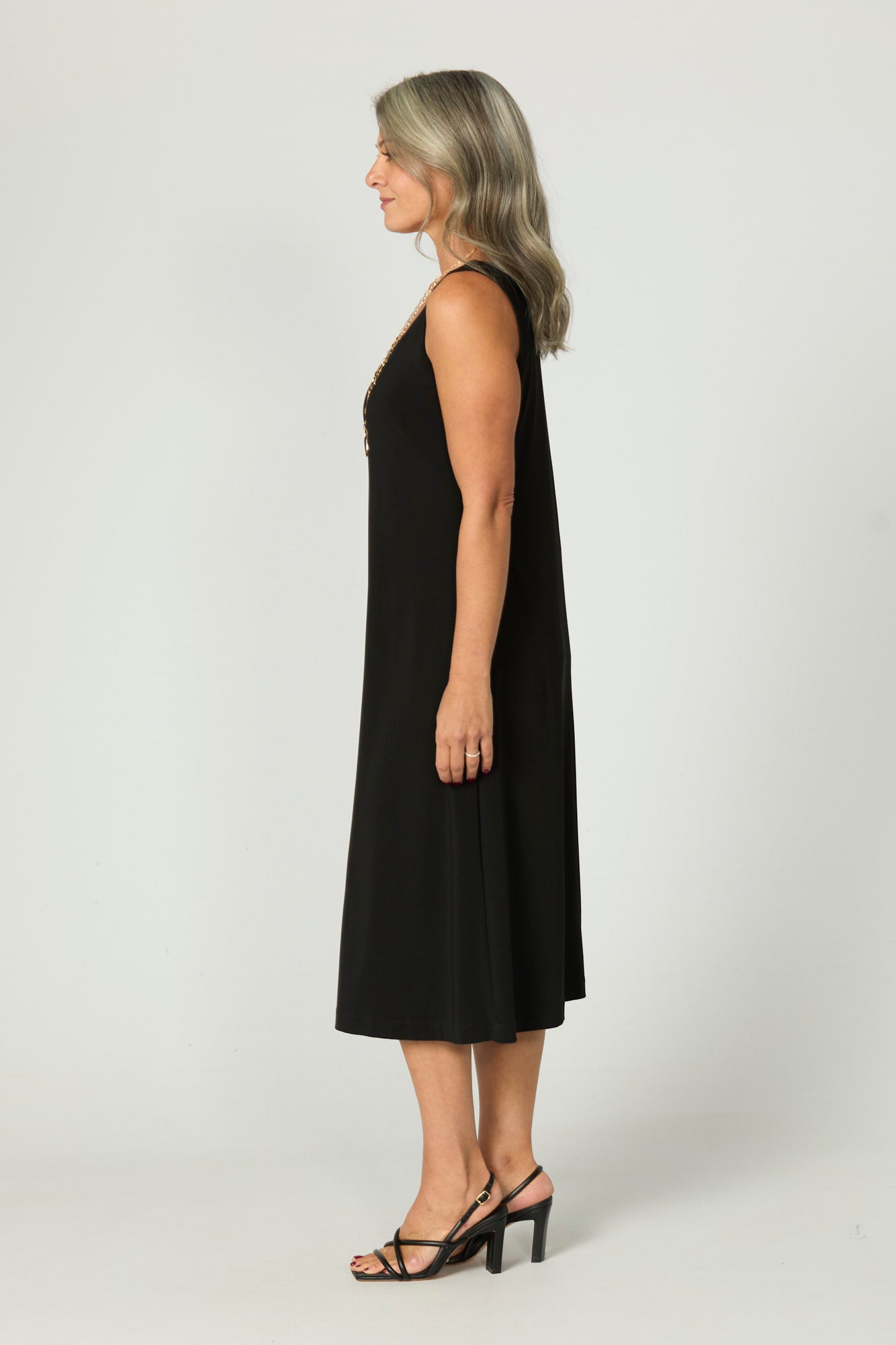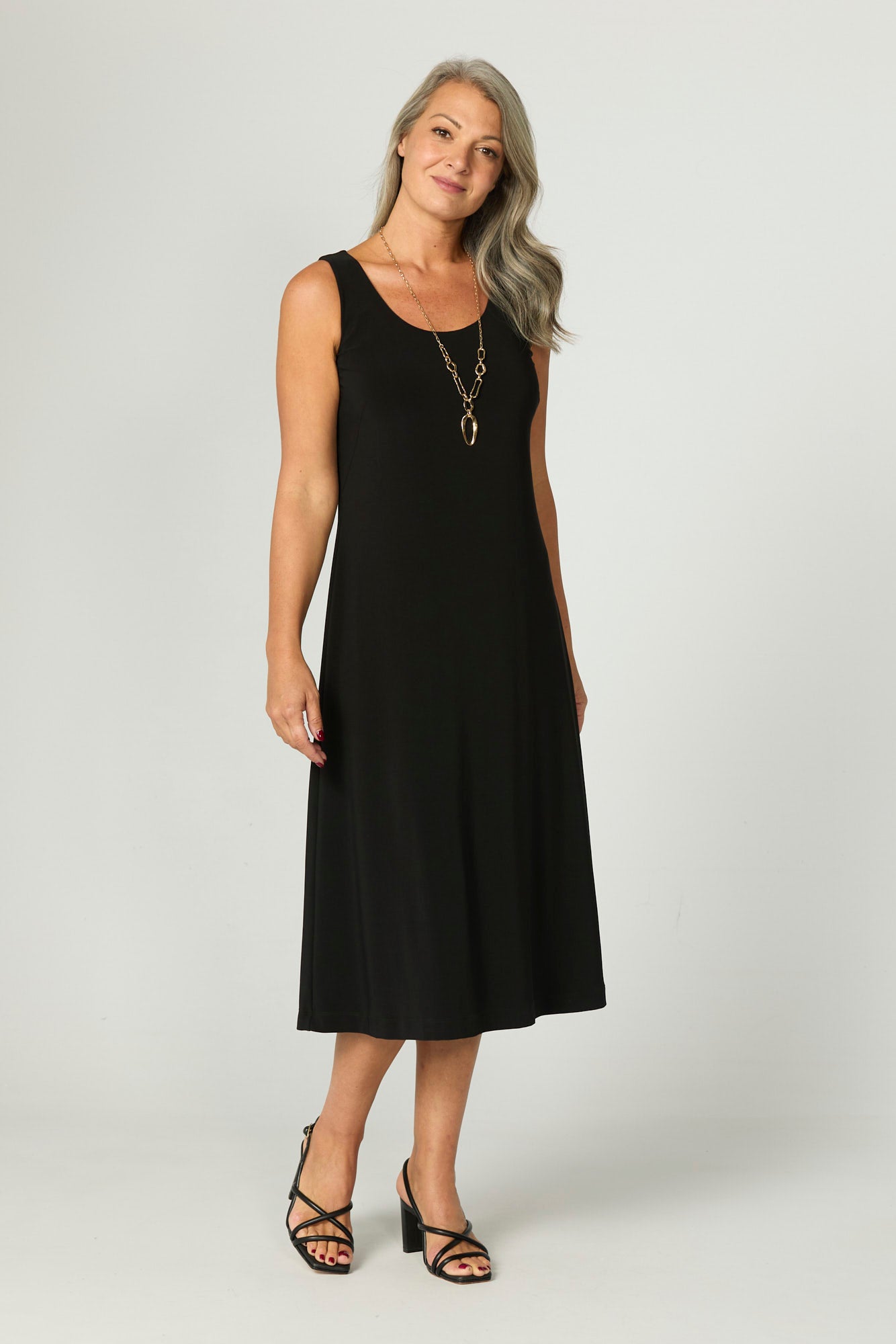 The Hush Dress is made from our popular and classic Hush fabric. Crafted with a comfort-rich stretch base, this dress drapes beautifully down past the knee. Perfect for an evening out and layered with a cardigan.