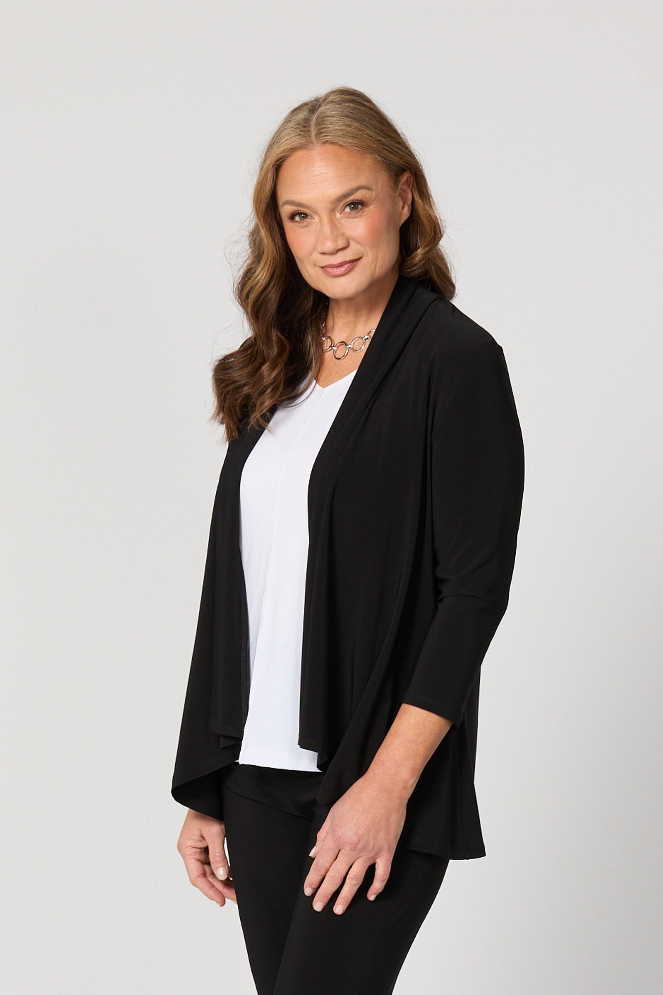 Elevate your wardrobe with the Hush Swing Cardigan in classic Black. Made in Australia, this lightweight cardigan features a graceful waterfall front and an A-line fit, offering a flattering silhouette. The soft, stretchy fabrication ensures comfort, while the set-in full-length sleeves add a touch of elegance to this versatile piece.