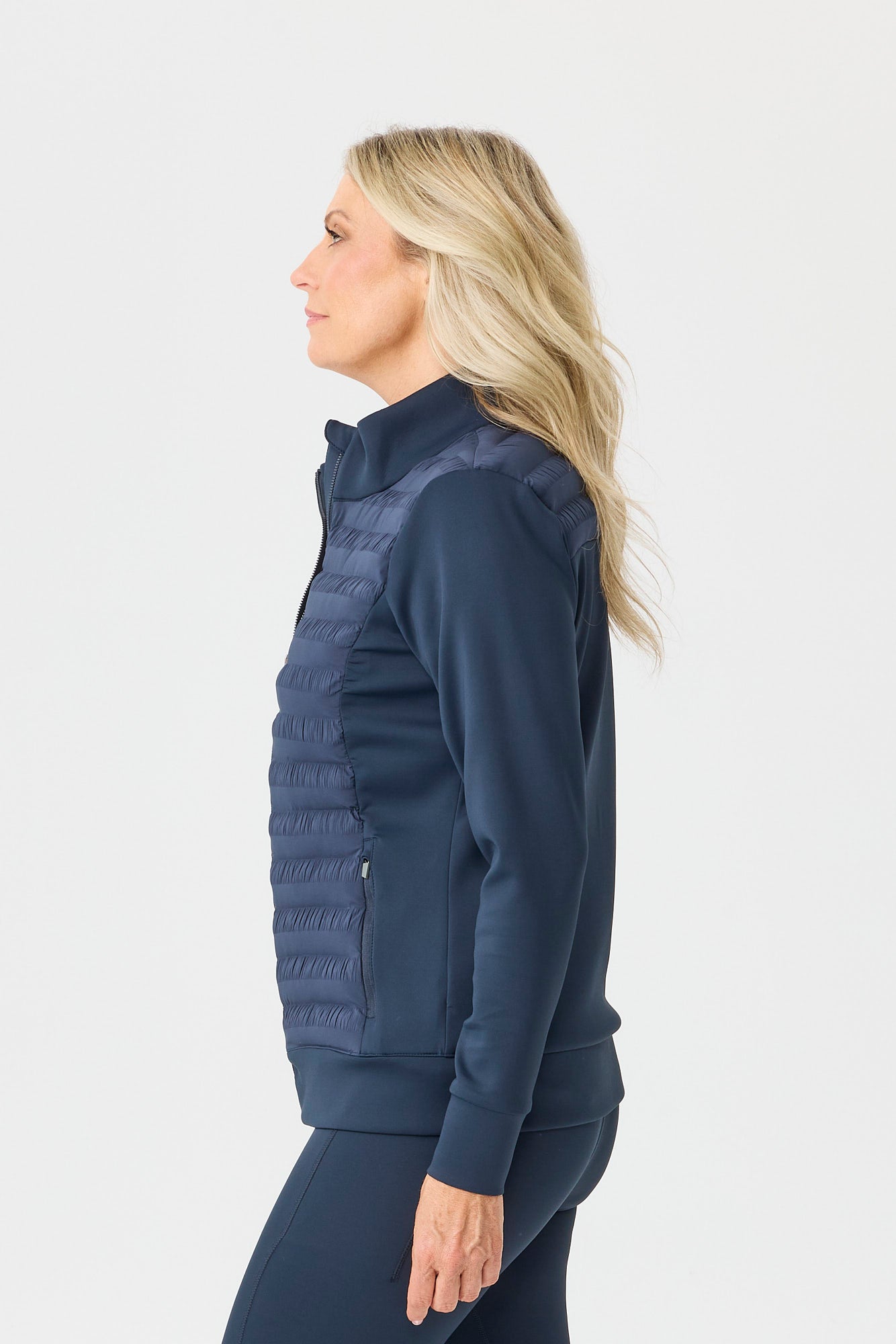 The Hybrid Quilted Zip Jacket in Navy is a jacket that delivers all-day comfort for cooler-weather layering. A collared neckline adds a clean, structured finish and keeps the upper line neat. Pockets keep small essentials close and reduce the need for a bag when you are on the move. A zip detail makes on and off easier and adds adjustable coverage at the neckline or front.