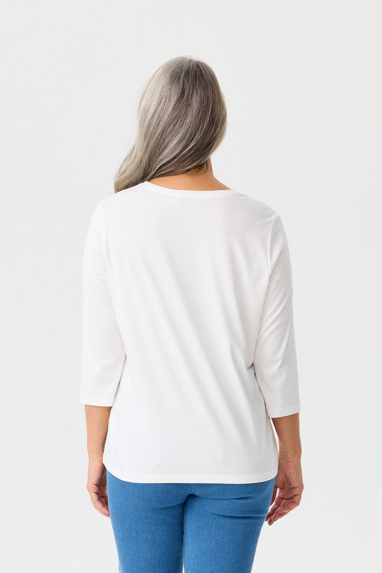 The Jerry 3/4 Sleeve Print Front Tee in White/Red Mix is a tee that delivers all-day comfort for daily routines. The fabric feels soft, keeping the tee comfortable against the skin during long wear. The round neckline offers clean coverage at the front and keeps the upper line simple for layering. 3/4 sleeves give coverage without feeling heavy, working well when you want a lighter sleeve length.