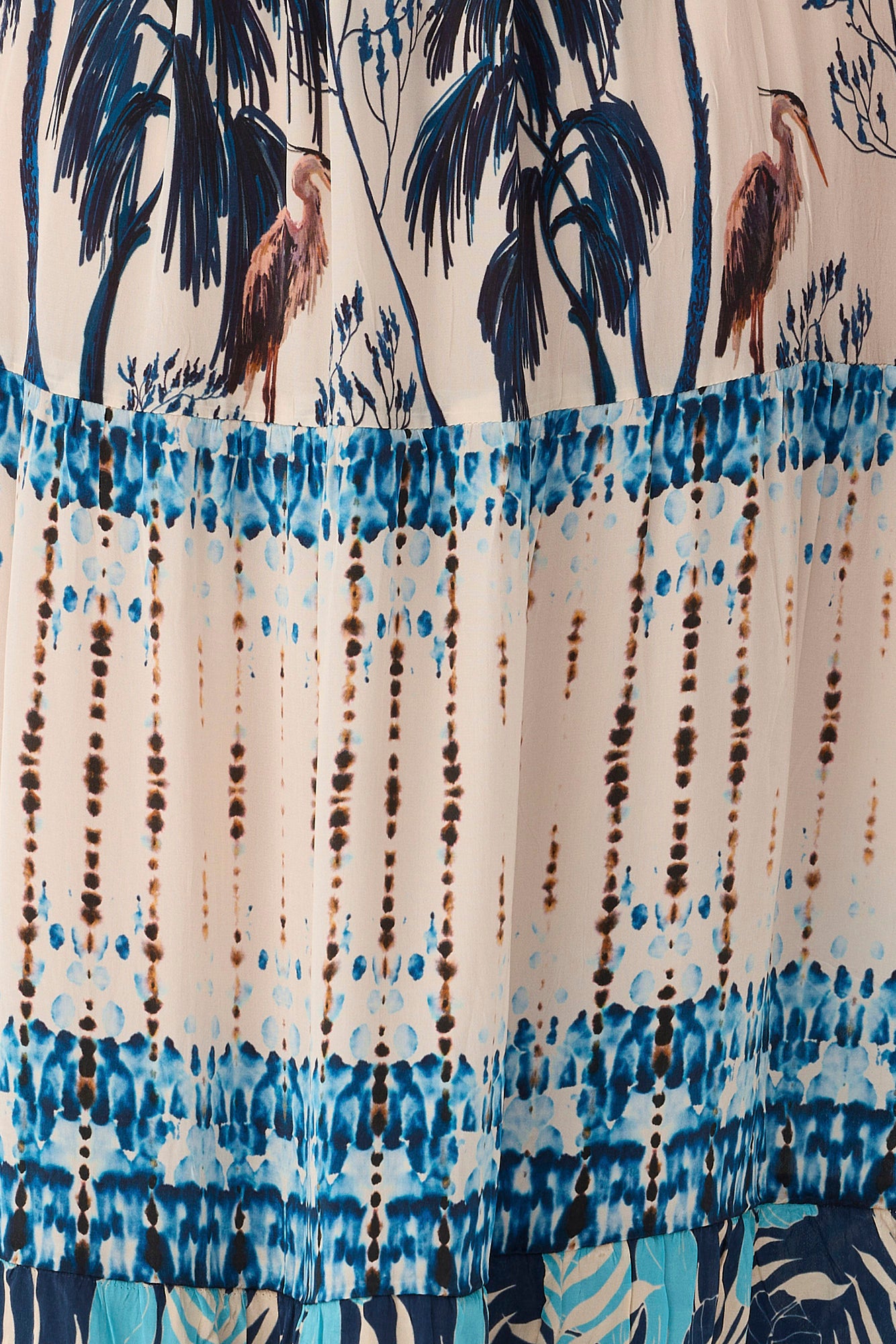 Step into breezy style with the Kya Dolman Sleeve Tiered Dress in Indigo Mix. Featuring a vibrant panelled tropical print, this relaxed dress is perfect for warm-weather days. The blouson dolman sleeves and tassel neck ties add a playful touch, while tiered detailing creates graceful movement with every step.