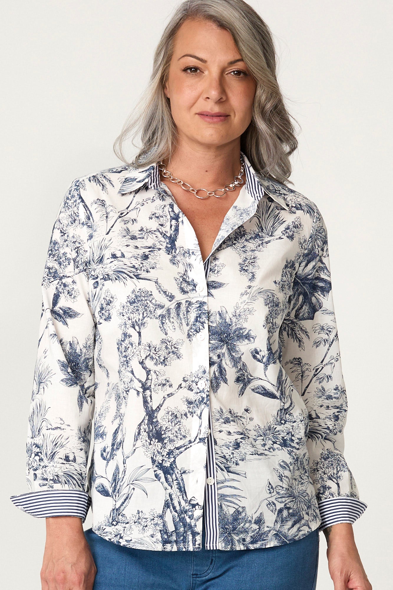 The Landscape Long Sleeve Ribbon Trim Shirt in Navy/White is a shirt that delivers all-day comfort for daily routines. Cotton fabric keeps the shirt comfortable against the skin and suited to long wear without feeling heavy. A collared neckline adds a clean, structured finish and keeps the upper line neat. Cuffed sleeves add a neat finish and keep the sleeve line in place.