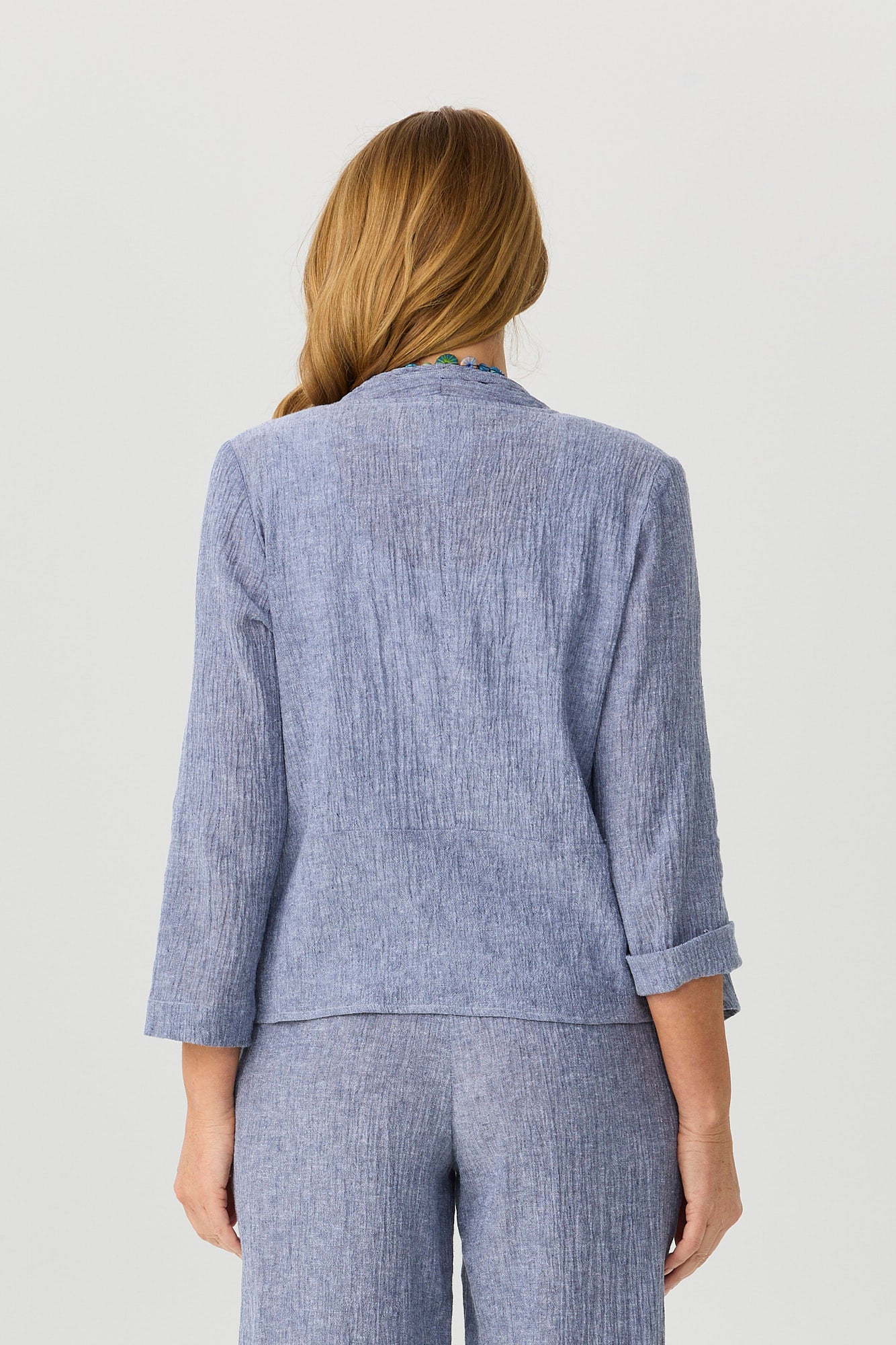 Flow through the seasons with the Lumina 3/4 Sleeve Waterfall Cardi in Navy. Made in Australia, this lightweight textured cardigan offers a graceful drape with its waterfall front and angled hem. Perfect for layering, it brings an effortless elegance to any outfit with its soft structure and versatile styling.