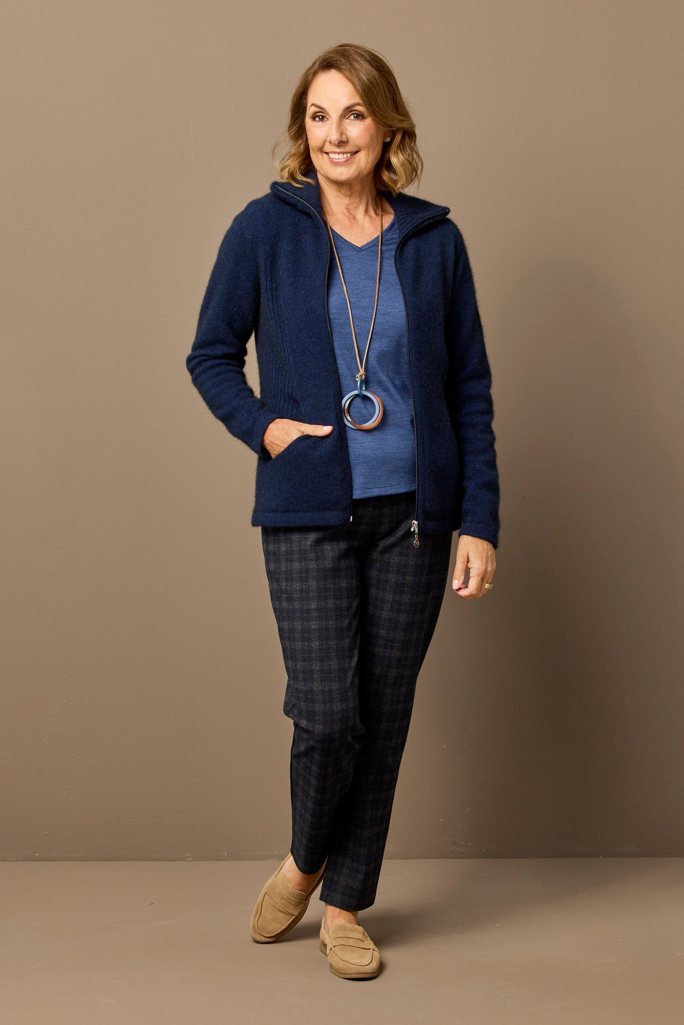 Made in New Zealand, it brings local production to a piece designed for regular rotation and frequent wear. The build supports easy layering, making it practical for changing temperatures and indoor-to-outdoor wear. It works well over simple tops when you want extra coverage without weight.