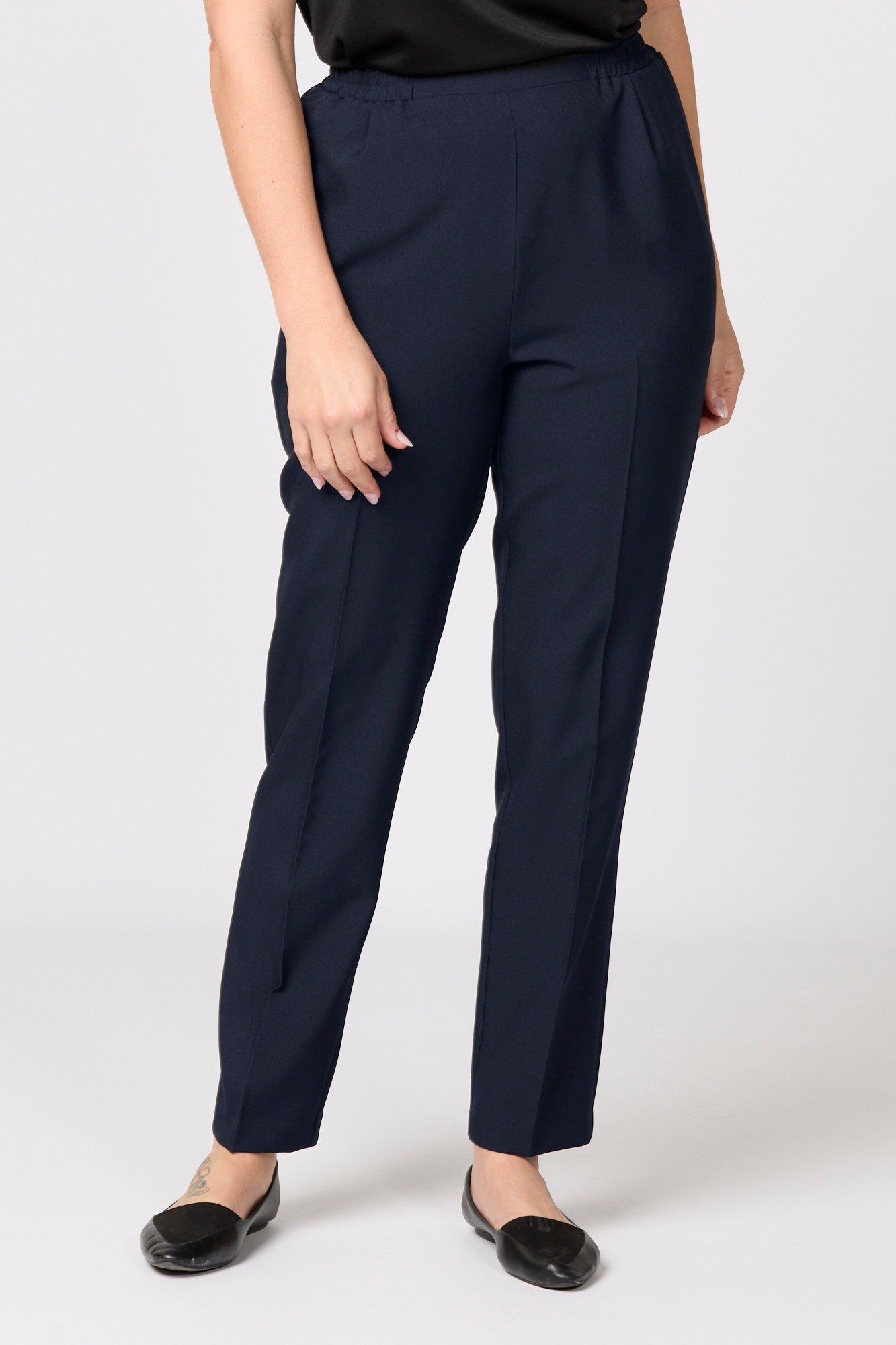 - Flat front waistband