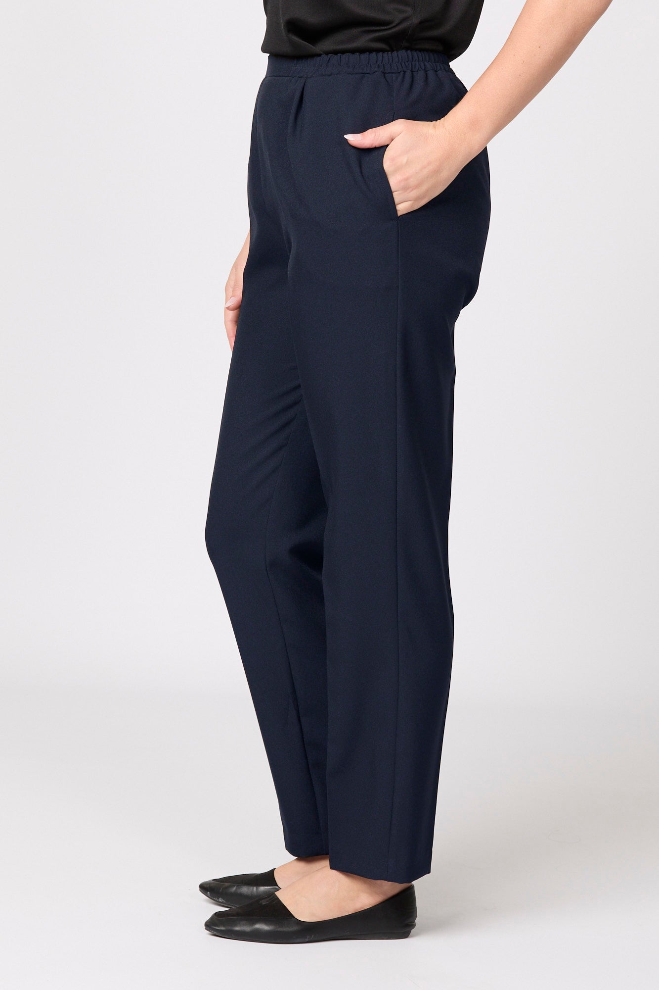 Elevate your style with our Reserve Plain Pull On Pant in White. Crafted in Australia, these ethically accredited pants offer both comfort and elegance. The full-length design boasts a back elastic waistband, flat front waistband, and convenient side seam pockets. Experience fashion and ethics combined.