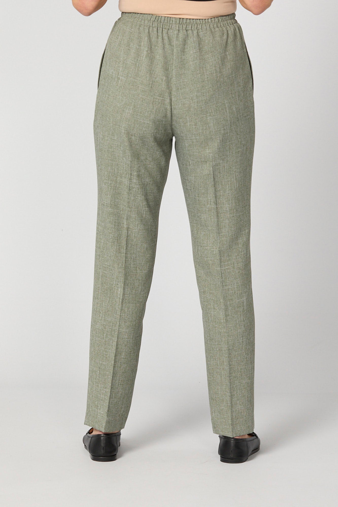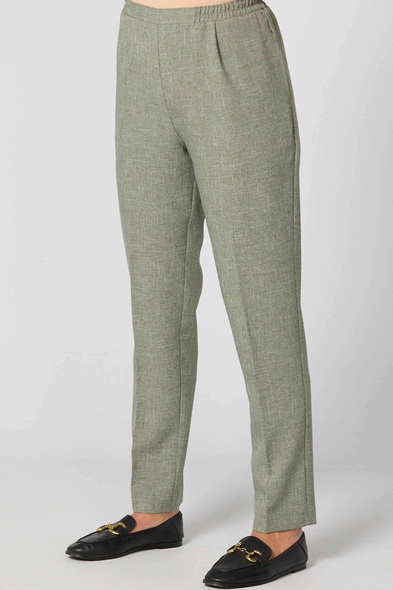 Elevate your style with our Reserve Plain Pull On Pant in Sage Marle. Crafted in Australia, these ethically accredited pants offer both comfort and elegance. The full-length design boasts a back elastic waistband, flat front waistband, and convenient side seam pockets. Experience fashion and ethics combined.