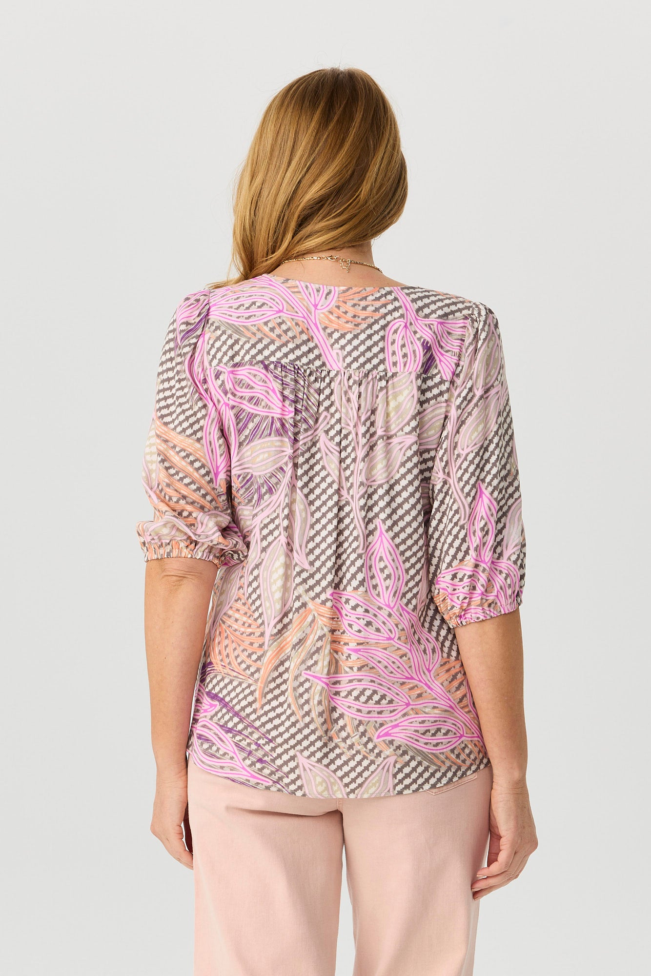 • 3/4 blouson sleeve with elastic opening