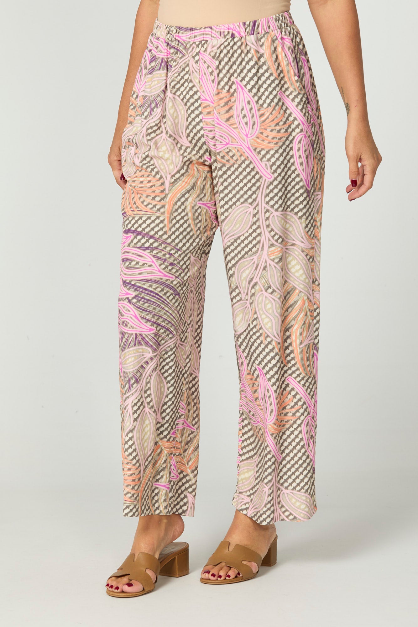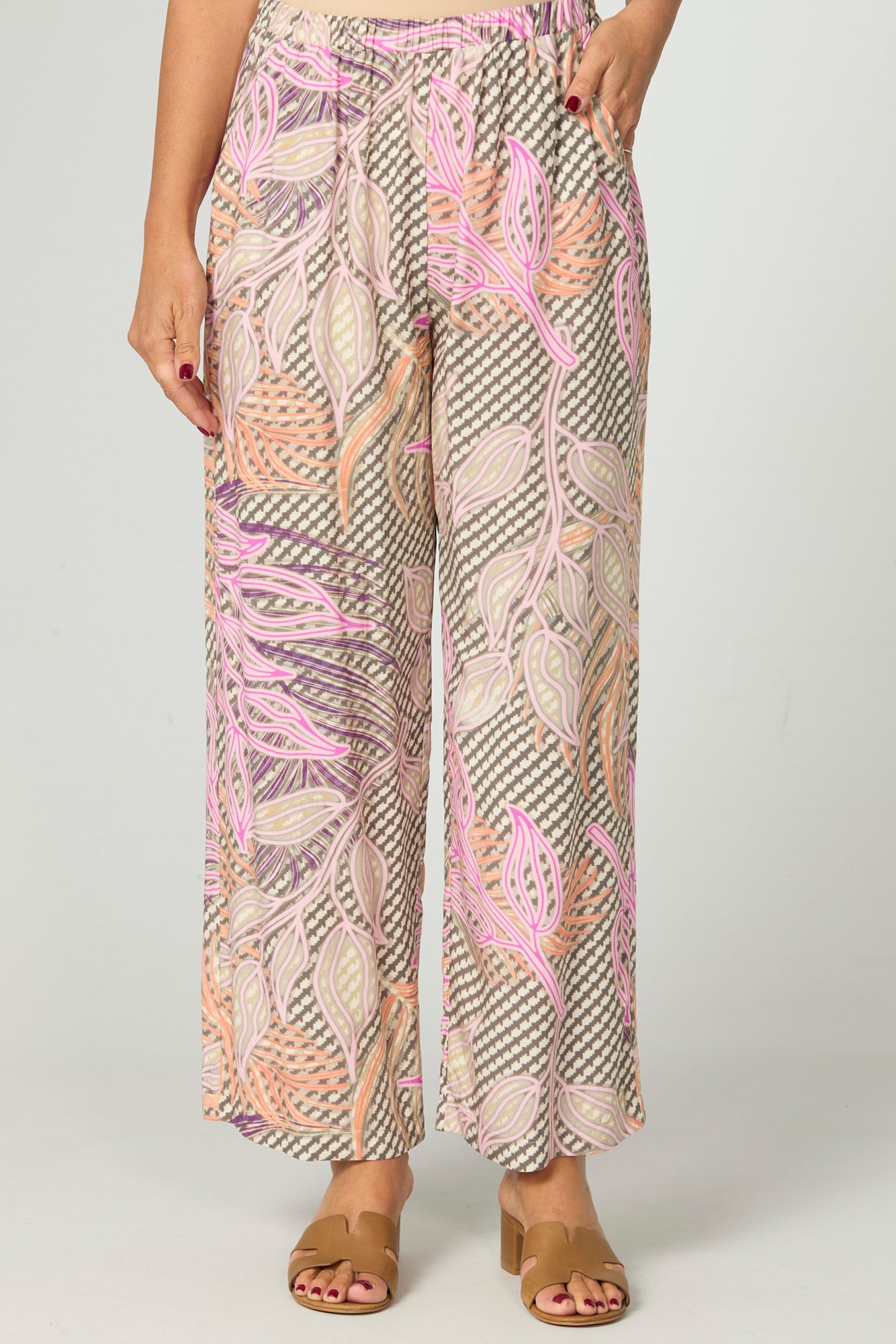 Step into relaxed elegance with the Summer Essence Pull On Pant in Multi. Made in Australia and adorned with a tonal botanical print, these pants offer effortless comfort and style. The elasticated waist ensures a flexible fit, while the wide-leg silhouette and cuffed hem create a breezy, polished finish perfect for warm-weather days.