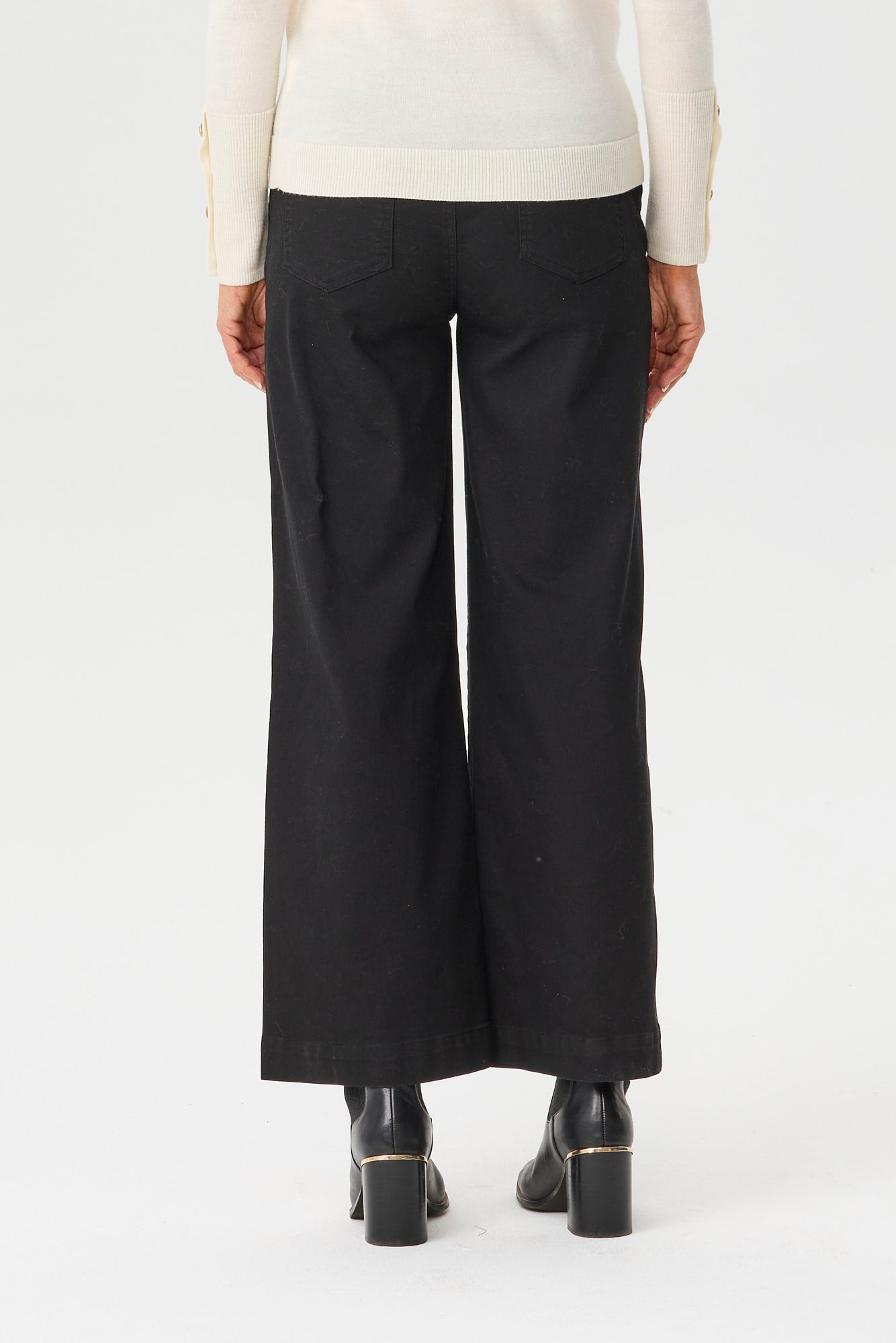 The Tilly Wide Leg Pull On Long Jean in Black are jeans that deliver all-day comfort for daily routines. A wide-leg shape adds room through the leg for easy movement and a relaxed line. An elastic waist provides pull-on ease and keeps the fit flexible without constant adjustment. Pockets keep small essentials close and reduce the need for a bag when you are on the move.