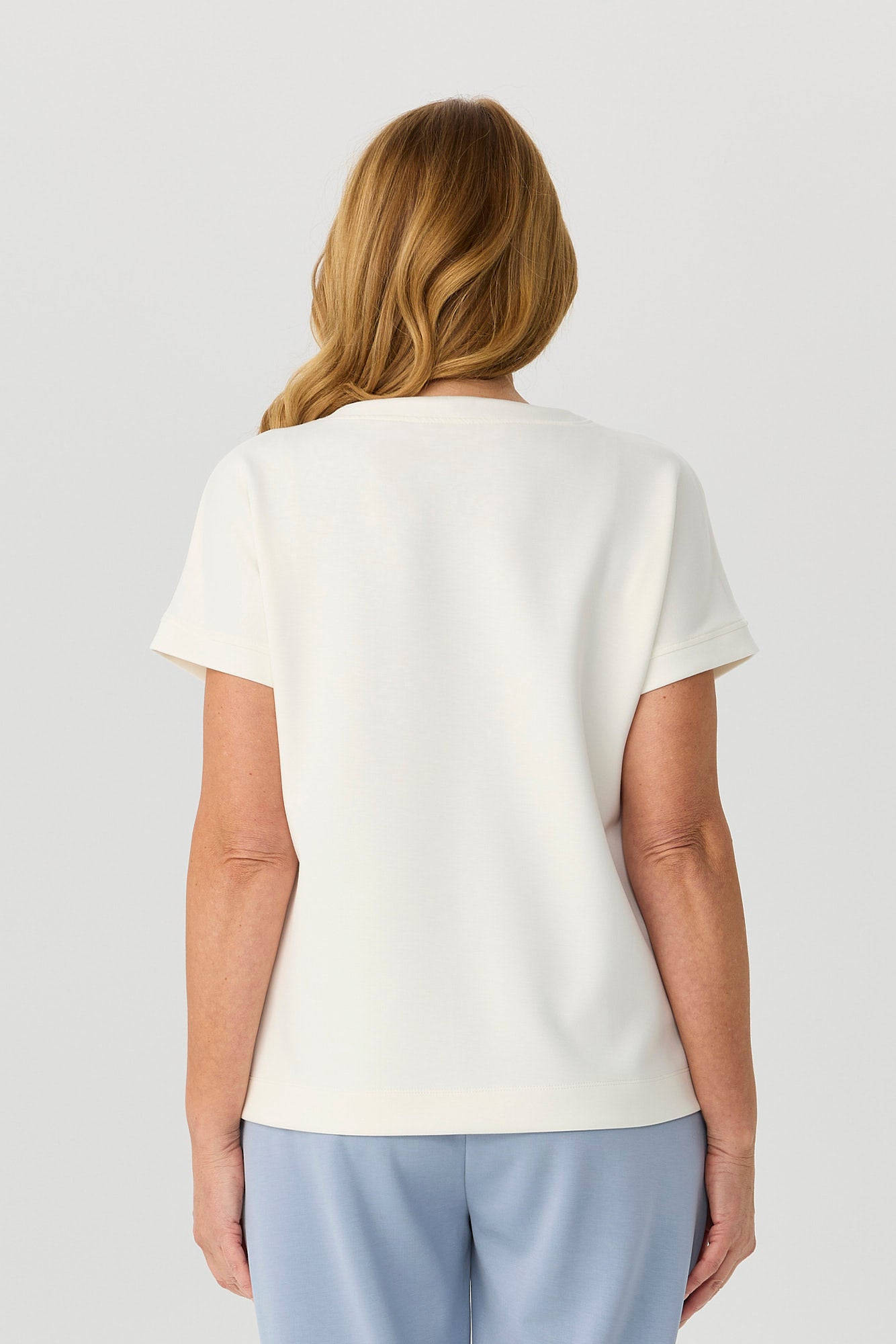 Refresh your casual wardrobe with the Zen Relaxed Short Sleeve Top in Ivory. Blending sporty luxe with everyday ease, this top features a relaxed fit with modern drawstring front ties and soft dropped shoulders. The wide hem and subtle seam detailing elevate its laid-back charm.