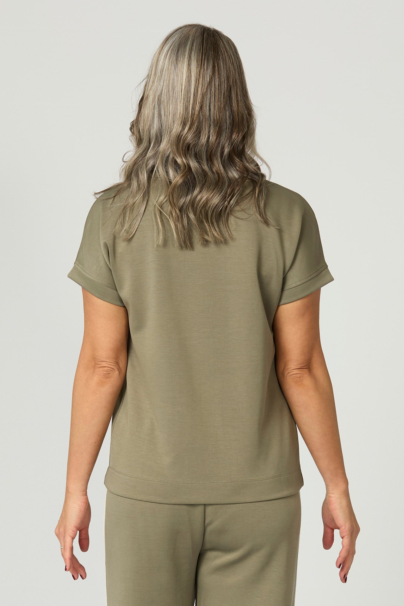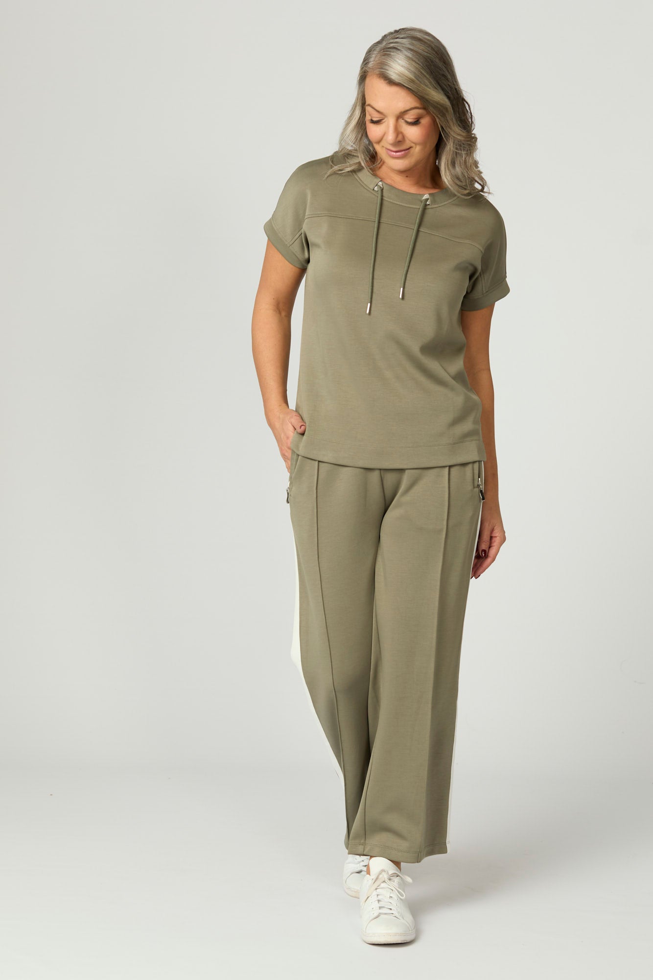 Refresh your casual wardrobe with the Zen Relaxed Short Sleeve Top in Olive. Blending sporty luxe with everyday ease, this top features a relaxed fit with modern drawstring front ties and soft dropped shoulders. The wide hem and subtle seam detailing elevate its laid-back charm.